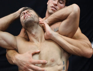 Blayne spends nearly the entire match twisting, writhing, and moaning in Bronco’s punishing holds — breath-stealing scissors, full nelsons that arch his back just right, and long stretches of chest-focused torment. Bronco works those pecs with precision, mixing control and cruelty in a way that leaves Blayne gasping.
